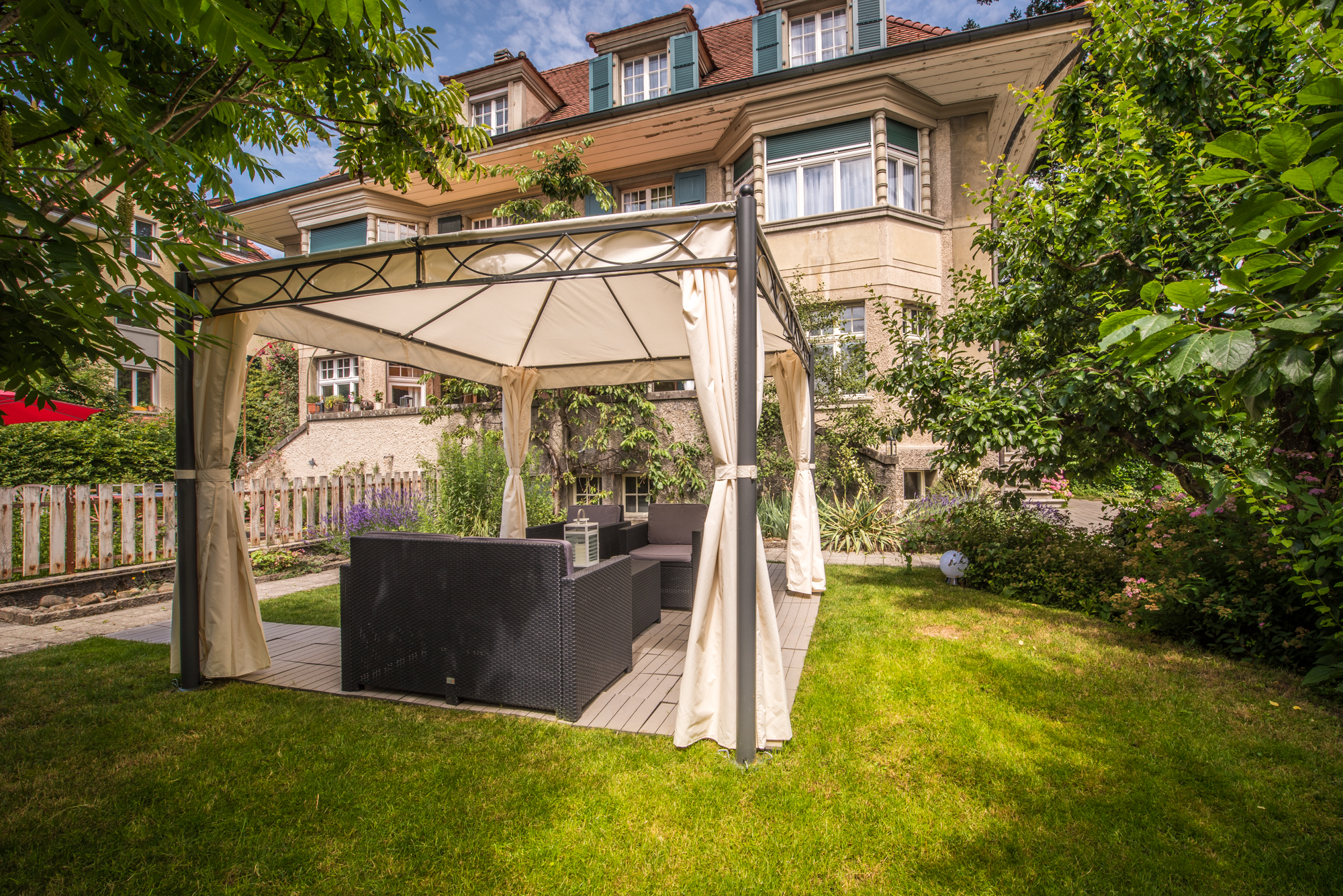 Your Deluxe Junior Suite is located on the 1st floor where you enjoy the view to the green surroundings and tranquility of the Murifeld-quarter, within walking-distance from most embassies and consulates, only 3 minutes walking-distance from tramway-stop "Weltpostverein" and close to supermarkets and restaurants..