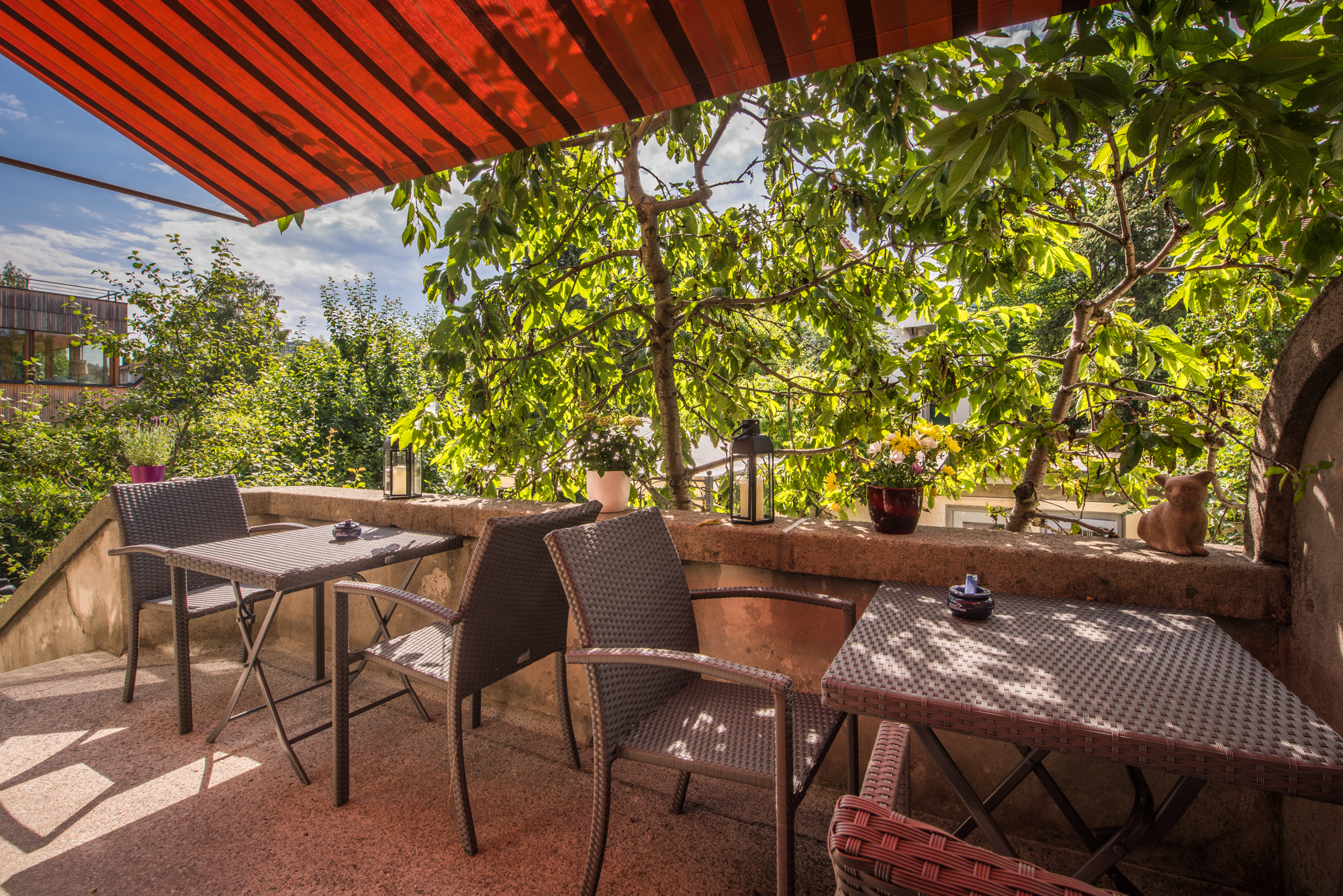 Your room is non-smoking; you are welcome to enjoy tobaccos on your balcony, the terrace, in the garden or the garden-lounge. Ashtrays are there at your disposition.